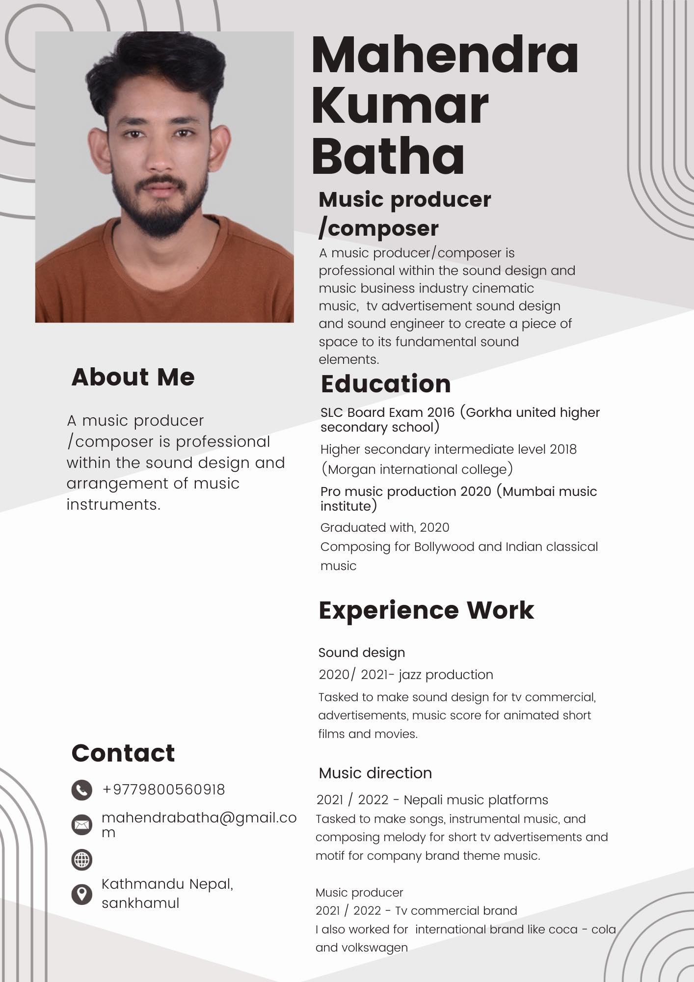 Myself Mahendra Batha, a sound designer based in capital city Kathmandu, Nepal. My Specializations include making sound for TV commercial advertisement and film score. I also have some experience and appreciation on this sector. Because of the interest and passion towards this sector, I desire to leverage my career in it.